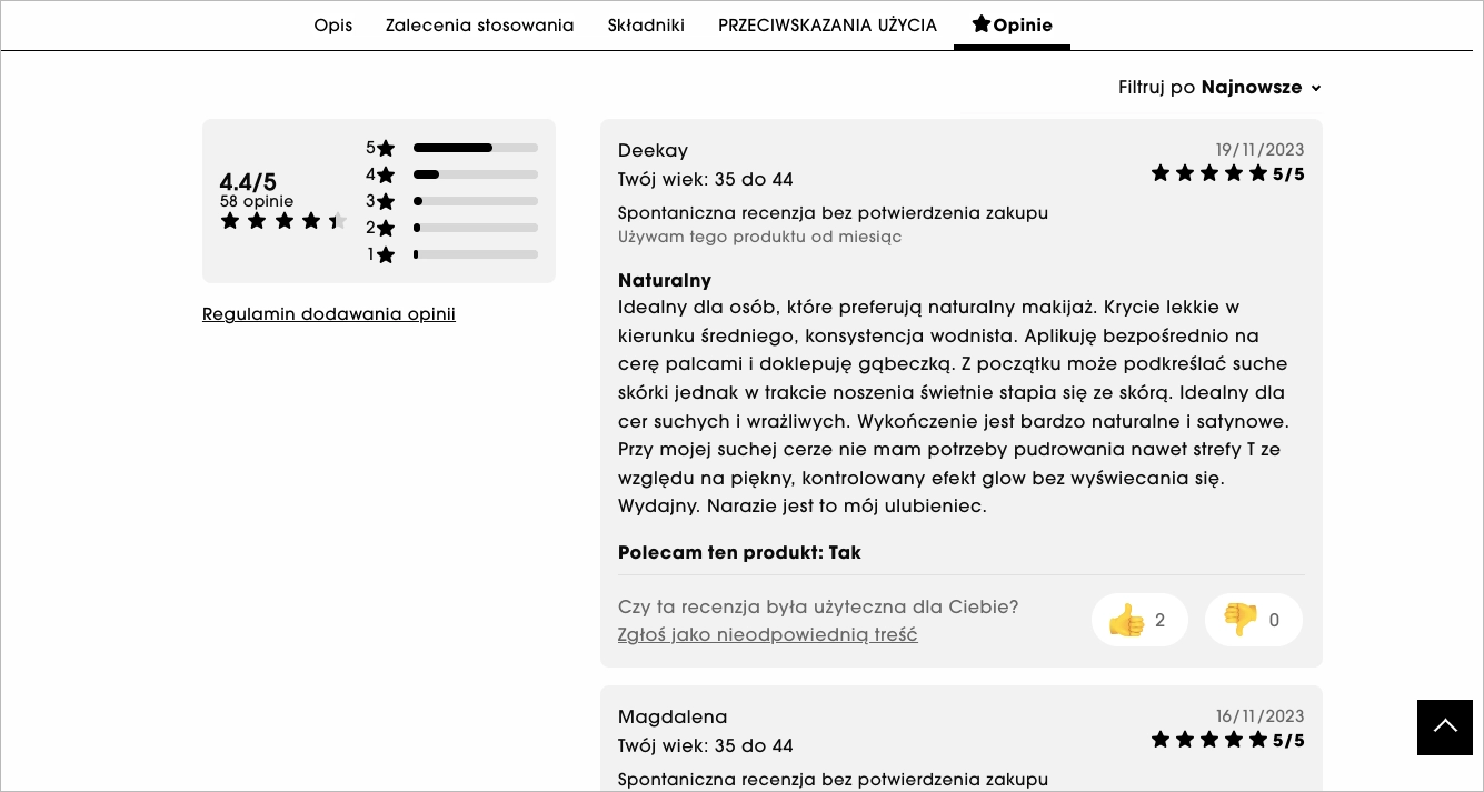 Sephora przykładowo wyświetla opinie i oceny klientów bezpośrednio na każdej stronie produktu, umożliwiając potencjalnym nabywcom zapoznanie się z doświadczeniami innych przed dokonaniem zakupu.