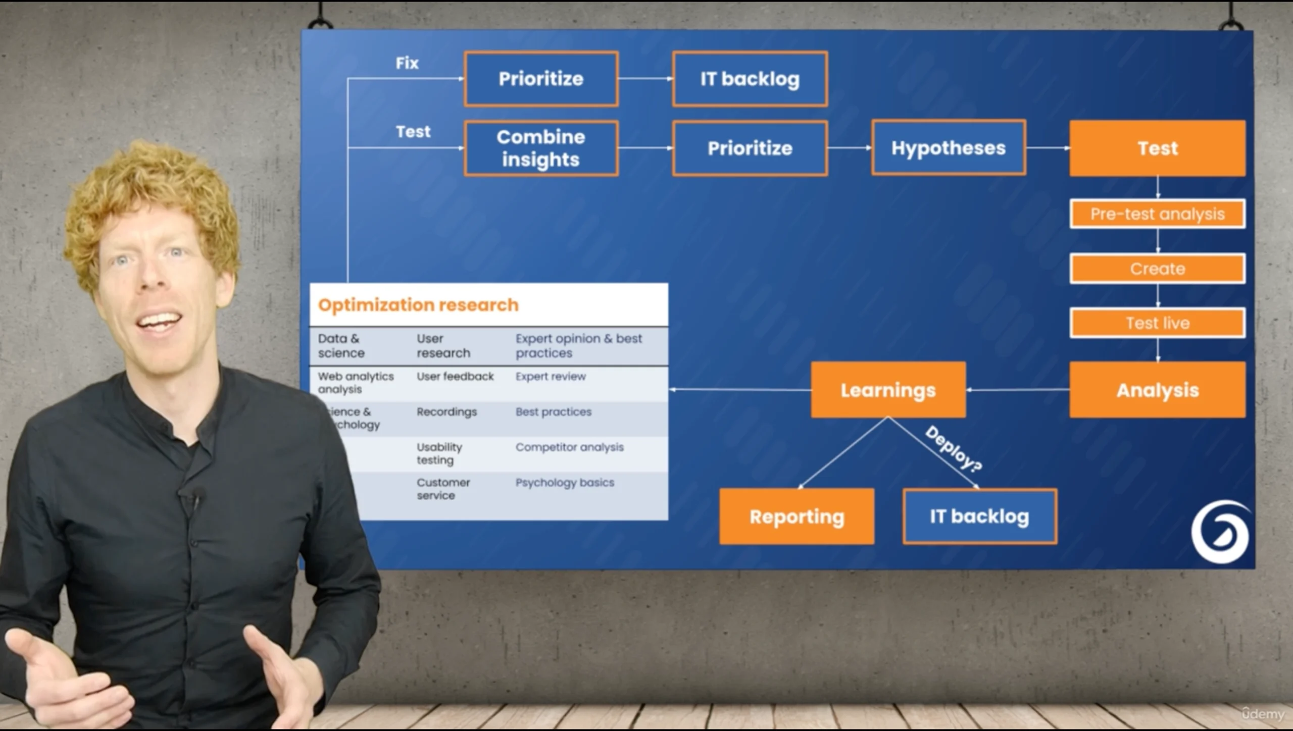 Kompletny kurs optymalizacji współczynnika konwersji jest dostępny na Udemy, internetowej platformie do nauki i szkoleń, oferującej szeroką gamę kursów i programów szkoleniowych z zakresu marketingu cyfrowego, z których wiele jest ściśle związanych z CRO.