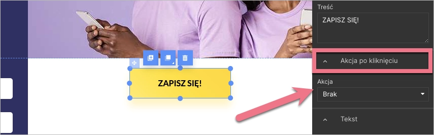 Jeśli chcesz stworzyć lejek sprzedażowy i jednym z jego kroków będzie landing page bez formularza, za to z przyciskiem kierującym na inny landing, możesz ustawić jego cel konwersji na kliknięcie w przycisk.