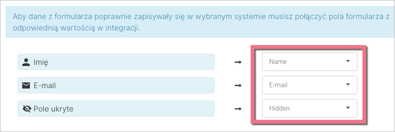 3. Pamiętaj, aby podczas łączenia formularza z systemem zewnętrznym połączyć pola z polami w integracji.
