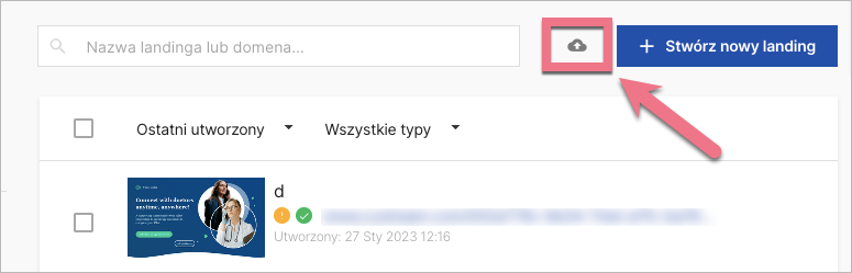 2. Przejdź do zakładki Landingi i kliknij ikonę importu obok przycisku Stwórz nowy landing.