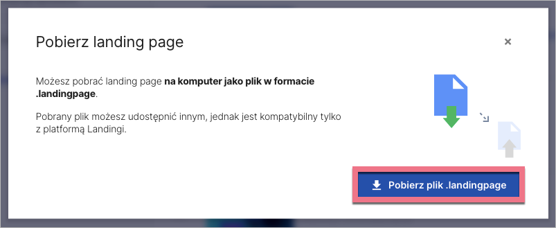 2. W oknie, które się pojawi, kliknij Pobierz plik .landingpage, aby potwierdzić eksport.