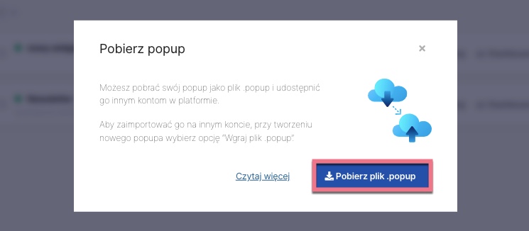 Pop-up stworzony w Landingi możesz pobrać do pliku w formacie .popup. Taki plik możesz zaimportować na innym koncie.