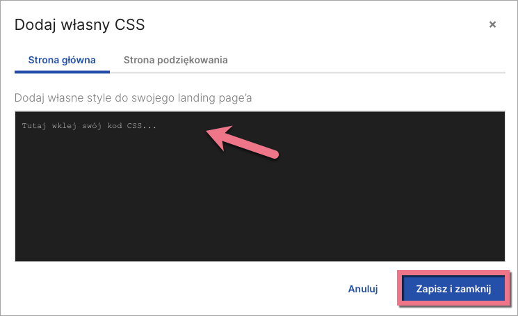 10. Wklej poniższy kod CSS w zakładce Strona główna. Jeśli masz tam również inne kody, dodaj go nad nimi, u samej góry (reguła @import użyta w naszym kodzie nie może się znajdować pod innymi kodami CSS).