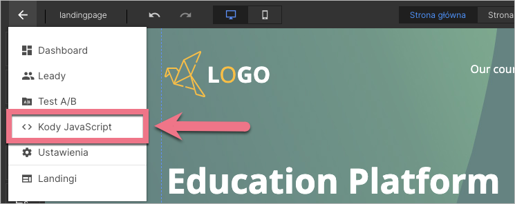 1. Zaloguj się do platformy Landingi i przejdź do edytora landing page’a. Wejdź w widok mobilny.