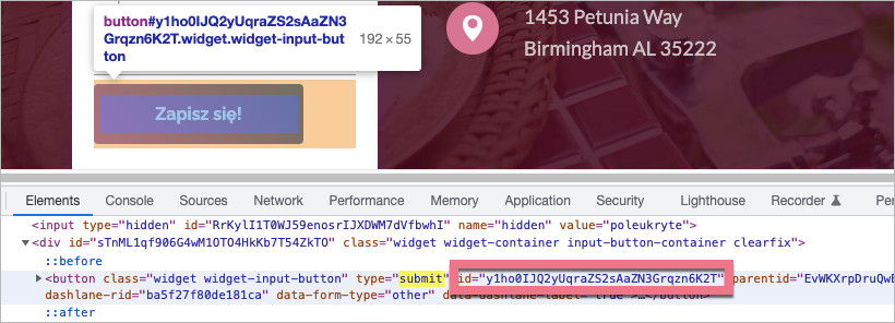 4. W ten sam sposób możesz znaleźć numer ID przycisku formularza (type=”submit”).
