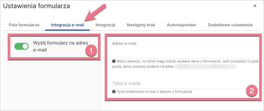 Integracja z adresem e-mail (powiadomienia o leadach z danymi z formularza) | Centrum Pomocy | Landingi