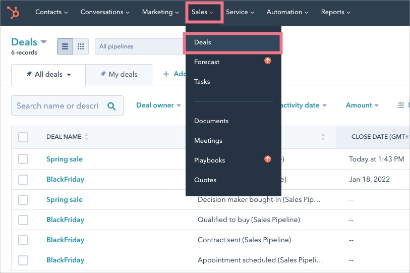- Dealami możesz zarządzać w zakładce Sales > Deals.
