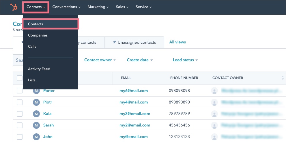 WAŻNE: Upewnij się, że utworzone przez integrację kontakty dodają się do Twoich list marketingowych w HubSpot. Przeczytaj, jak dodać lub usunąć kontakty z listy, nadając jej odpowiednie filtry.