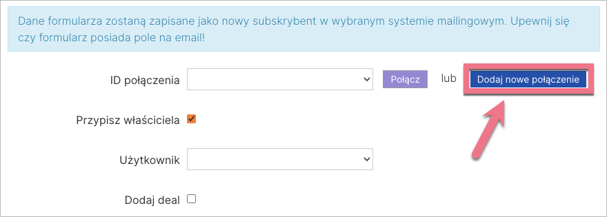 9. Od teraz podczas każdej konfiguracji formularza możesz skorzystać z już istniejącego połączenia bez konieczności ponownego logowania się.