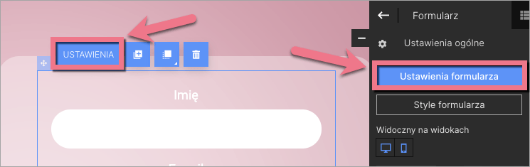 2. Kliknij formularz i przejdź do jego Ustawień.