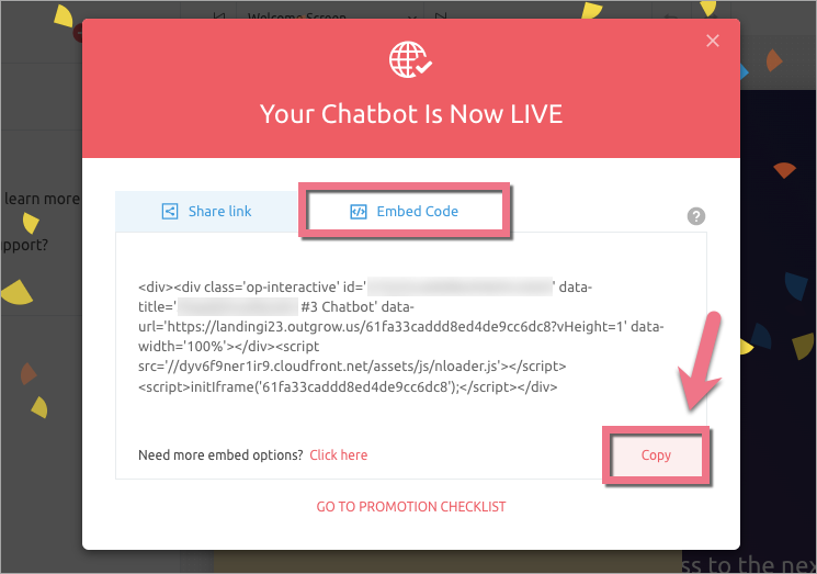 4. W nowym oknie przejdź do zakładki Embed Code i skopiuj wygenerowany kod.