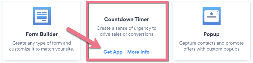 3. Wybierz aplikację, którą chcesz osadzić na landing page’u (dla przykładu wybraliśmy licznik). Kliknij Get App.