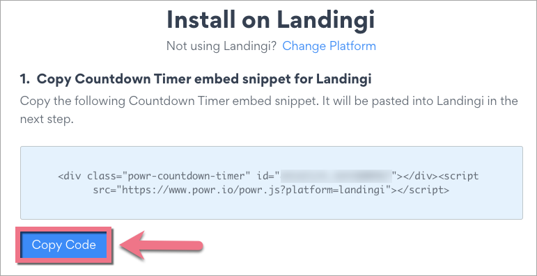 5. Po opublikowaniu wyszukaj platformę Landingi i wybierz ją.