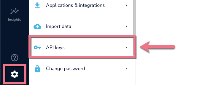 2. Przejdź do Settings (ikona koła zębatego) i z menu wybierz zakładkę API keys (klucze API).