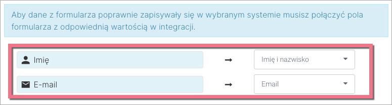 5. Następnie połącz pola formularza z odpowiednimi polami w integracji.