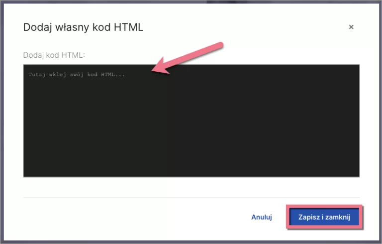 2. Przejdź do ustawień widgetu i wklej kod Przycisk do płatności z Tpay. Zapisz i zamknij.