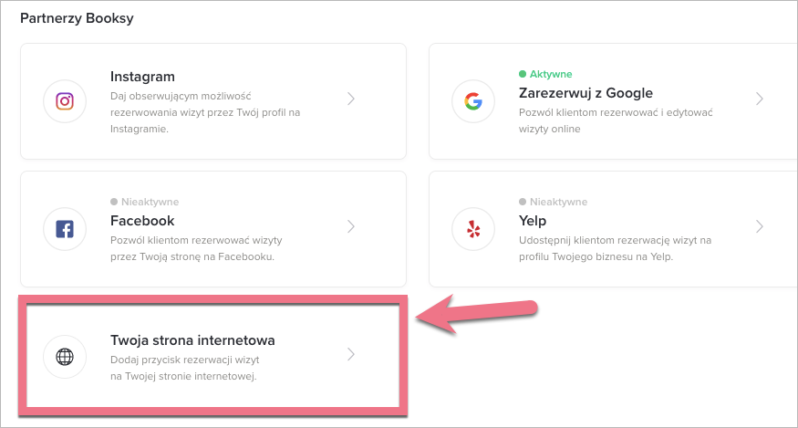 4. W sekcji Partnerzy Booksy wybierz Twoja strona internetowa.