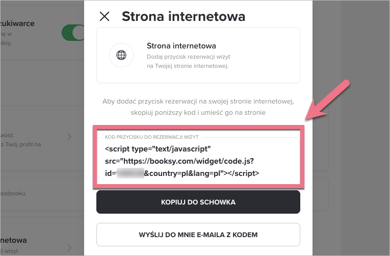 4. Wklej kod z Booksy. Następnie Zapisz i zamknij.