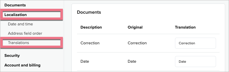 6. Aby przetłumaczyć treści wyświetlane na elementach, przejdź do zakładki Localization i wybierz Translations.