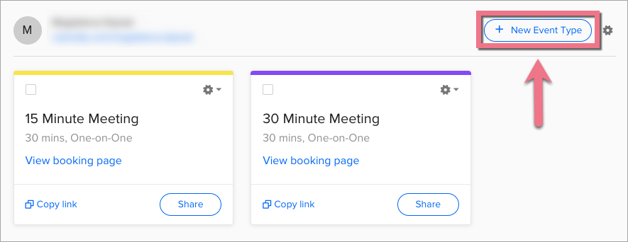 5. Jeżeli chcesz dodać więcej opcji spotkań, kliknij New Event Type i skonfiguruj nowe wydarzenie. Następnie przejdź do ustawień kodu.