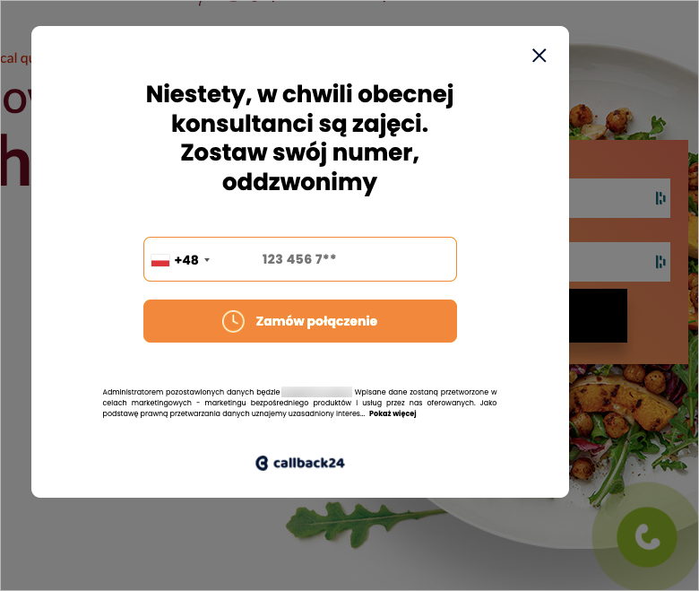 Callback24 to narzędzie, które zachęca odwiedzającego stronę internetową do pozostawienia numeru telefonu, a aplikacja pozwala sprzedawcy oddzwonić do tego klienta w ciągu 15 sekund. Z tej instrukcji dowiesz się, jak zainstalować Callback24 na swoim landing page’u w Landingi.