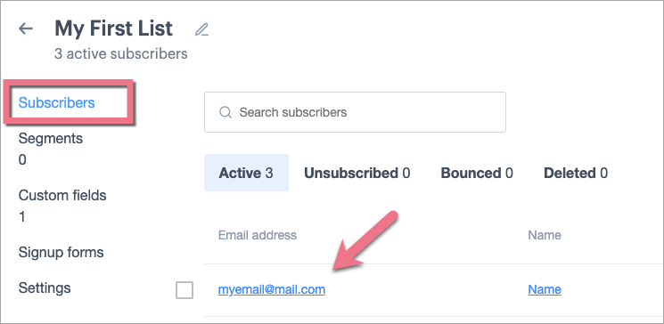 2. W zakładce Subscribers znajdziesz listę Twoich leadów. Kliknij jeden z nich, by zobaczyć szczegóły.