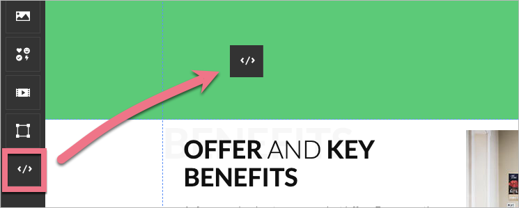 2. Odszukaj widget HTML. Następnie przeciągnij go i upuść w wybrane miejsce w obszarze aktywnym edytora.