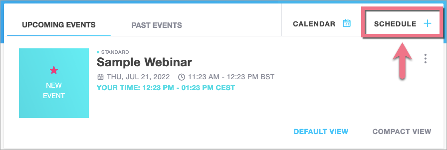 3. Wypełnij wymagane pola i utwórz swój webinar. Następnie kliknij Schedule.