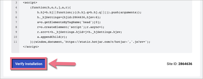 4. Wróć do platformy Hotjar. Kliknij Verify Installation (Zweryfikuj instalację).