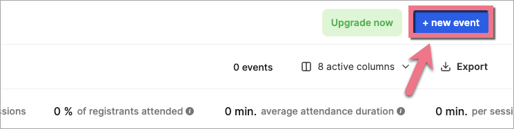 2. W prawym górnym rogu kliknij w przycisk + new event.