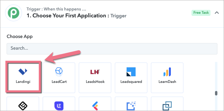 4. W sekcji Trigger wyszukaj i wybierz Landingi.