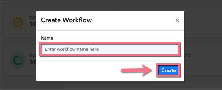 3. Wpisz nazwę nowego workflow i kliknij Create.