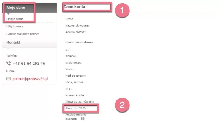 Pobierz kod CRC i id-sprzedawcy z Przelewy24