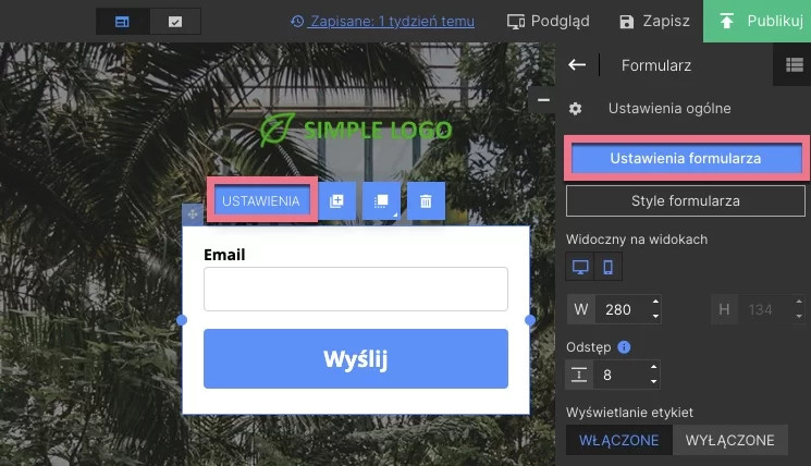 2. Stwórz formularz i przejdź do jego Ustawień.