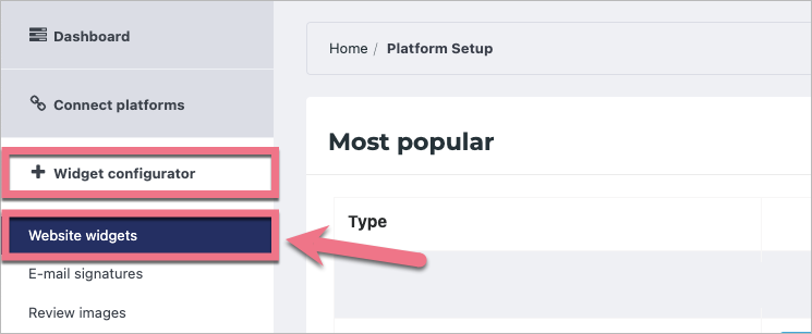 2. W menu po lewej stronie kliknij w Widget configurator i wybierz Website widgets.