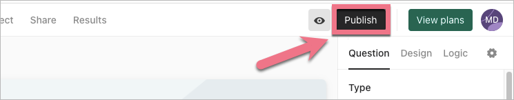 2. Stwórz formularz lub ankietę, a następnie kliknij Publish.