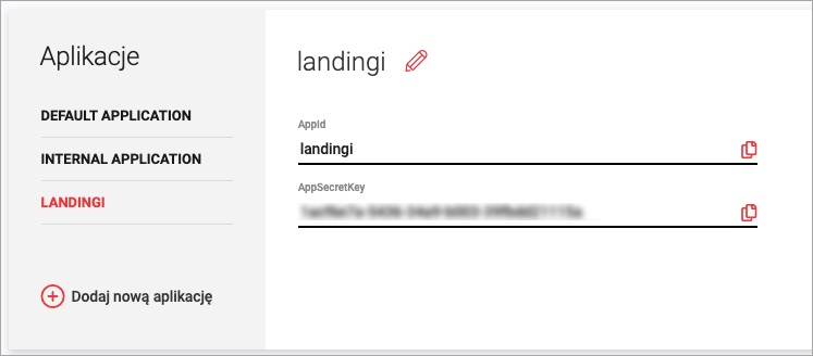 4. Zobaczysz AppID oraz AppSecretKey nowej aplikacji. AppID to zawsze nadana przez Ciebie nazwa aplikacji.