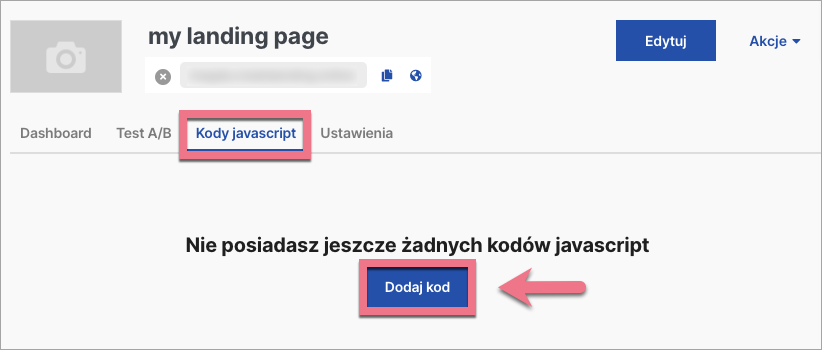 7. W Dashboardzie przejdź do zakładki Kody JavaScript i kliknij Dodaj kod.