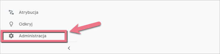 1. Zaloguj się do swojego konta Google Analytics, następnie przejdź do zakładki Administracja (w lewym dolnym rogu strony).