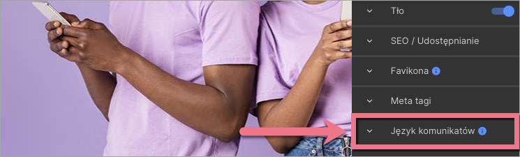 Język komunikatów dla wybranego landing page’a, pop-upu lub lightboxa