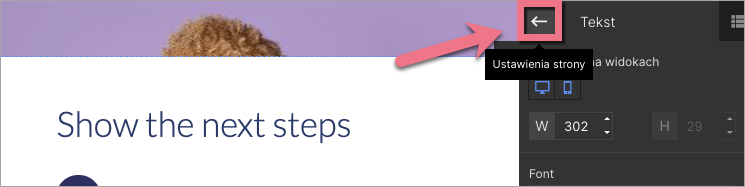 W trakcie edycji wrócisz do Ustawień strony, klikając na strzałkę: