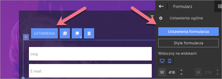 1. Przejdź do edytora landing page’a i wejdź w Ustawienia widgetu Formularz.