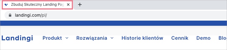 - Tytuł będzie się wyświetlał w wynikach wyszukiwarki oraz na zakładce z otwartą stroną w przeglądarce.