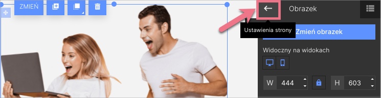 W trakcie edycji do Ustawień strony wrócisz, klikając na strzałkę: