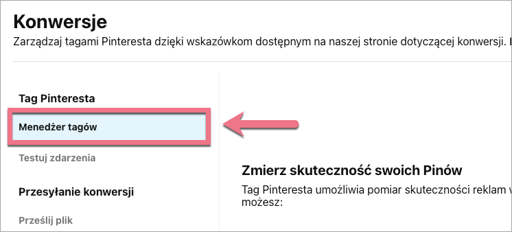 Aby zainstalować tag Pinteresta, musisz mieć konto firmowe na Pintereście oraz dostęp do Menedżera reklam.