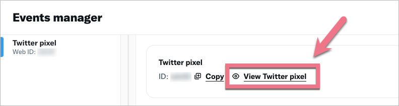 5. Do swojego kodu możesz w każdej chwili przejść po wybraniu pixela i kliknięciu View X pixel/View Twitter pixel w sekcji Events manager.