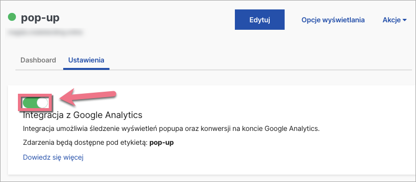 W platformie Landingi możesz zintegrować pop-up z Google Analytics 4 i dzięki temu śledzić wyświetlenia pop-upu oraz konwersję (rozumianą jako wypełnienie formularza na pop-upie) na swoim koncie GA4.