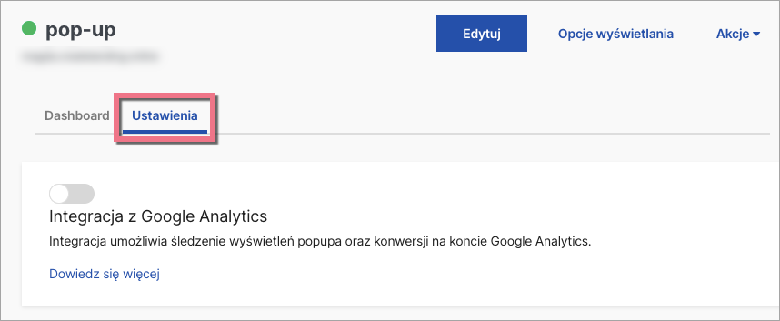 1. Zaloguj się do platformy Landingi, a następnie wejdź w zakładkę Pop-upy i Dashboard wybranego pop-upu.