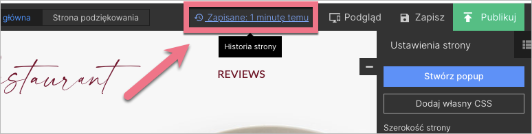 WSKAZÓWKA: Jeżeli Twój projekt został w ten sposób błędnie zapisany, skorzystaj z Historii strony, by przywrócić poprzednią wersję.